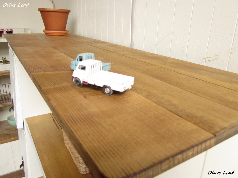 棚の塗装はオイルステインです。