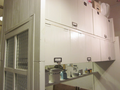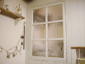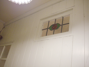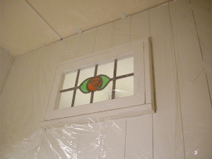 ←アンティークステンドグラスです。 買えば何万円もするモノですが これはなんと拾い物! 木枠を付け直してはめこみました! |